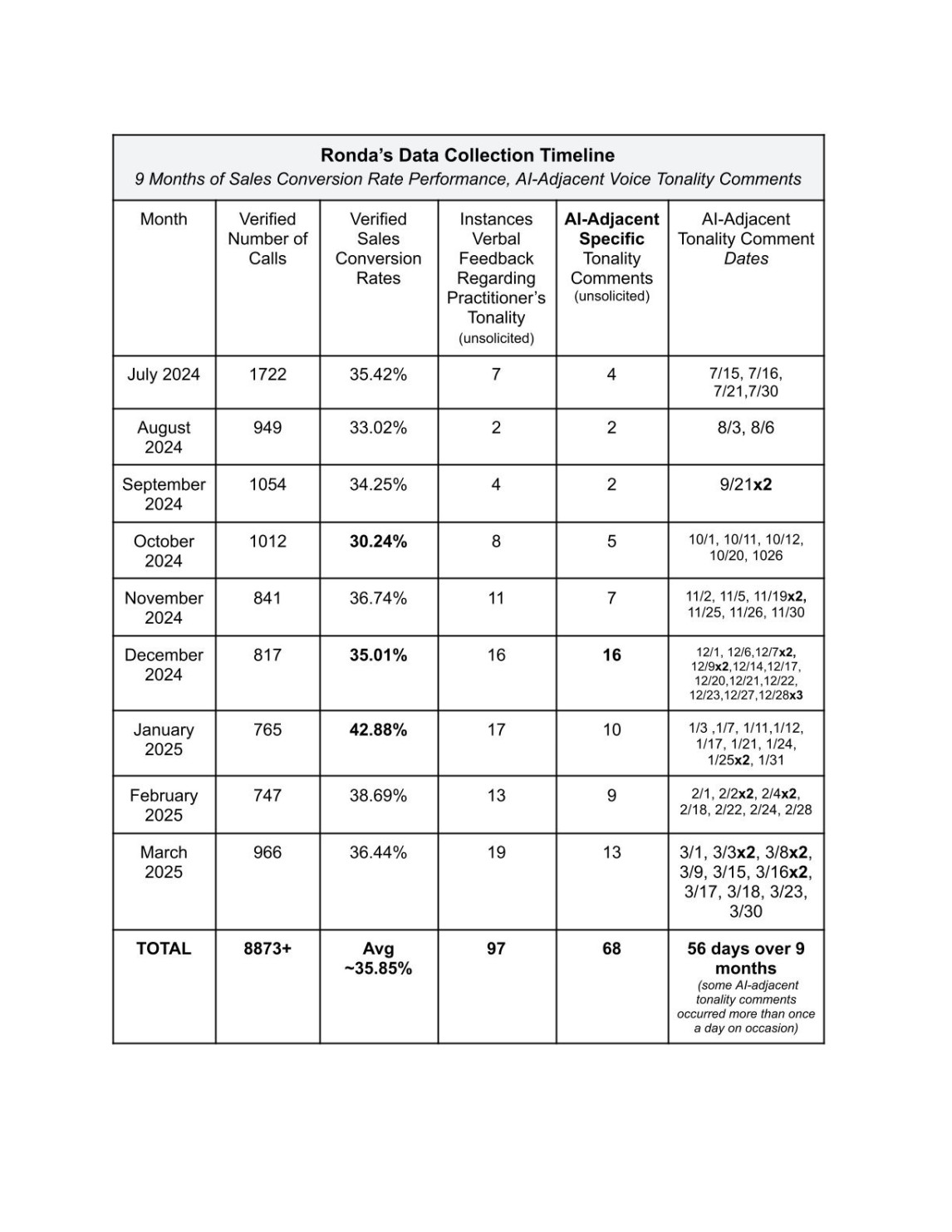 The documented performance represents correlation, not definitive causation. Multiple factors contribute to sales conversion including product quality, pricing, customer need, market conditions, and individual sales skill and may not convert via voice AI fine-tuning and or custom licensing. Results may differ/NOT guaranteed.